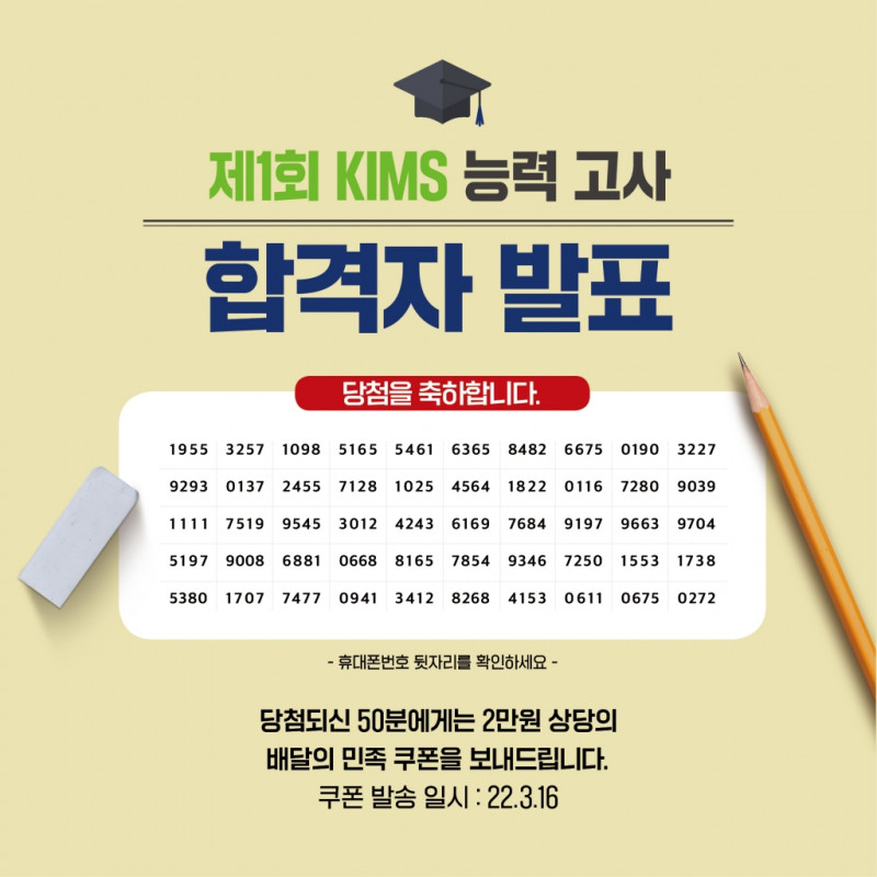 과학문화 <제1회 KIMS 능력고사> 당첨자 발표!