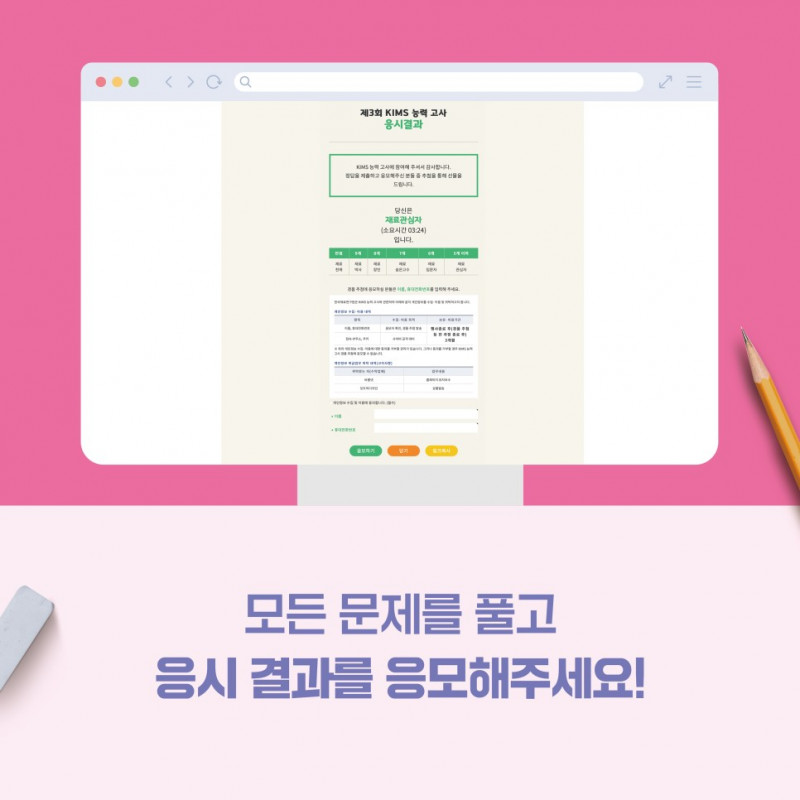 과학문화 <제3회 KIMS 능력고사> 안내 페이지 정보 작성자 운영자 댓글 0건 조회 1,187회 작성일 22-09-08 14:35 목록 본문 이전글<제3회 KIMS 능력고사> 당첨자 발표! 22.10.19 다음글KIMS 연구성과 국민체험단 선정자 안내 22.07.22